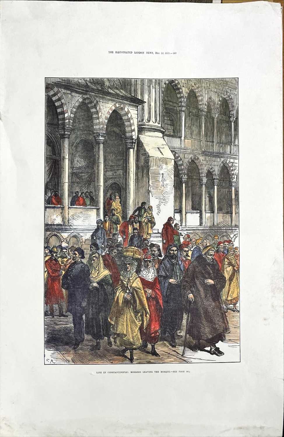 the illustrated London news dec 13 1879 tarihli yayını Konstantinopoliste Hayat, Camiden Çıkan Müslümanlar haberinin taşbaskı tablosu 35x50
