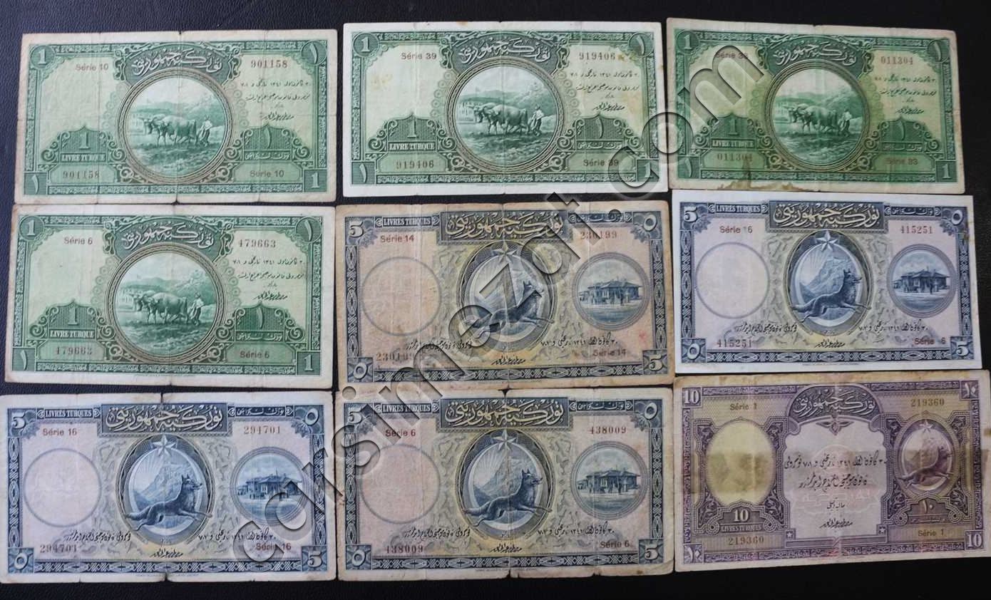 1. EMİSYON 1/5/10 LİRA 9 LU LOT HALİYLE
