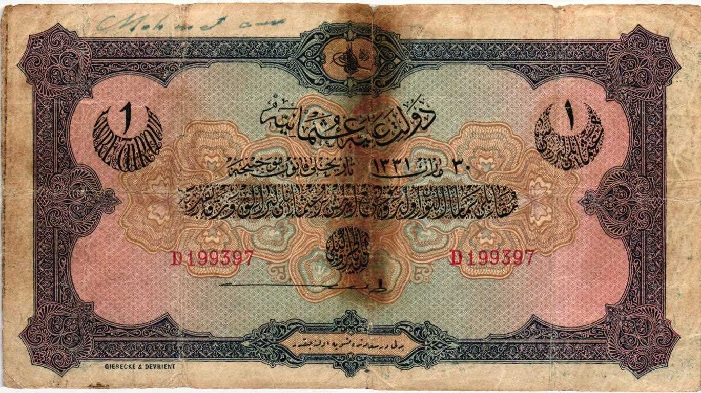 1331 SULTAN REŞAD 1 LİRA SERİ D HALİYLE