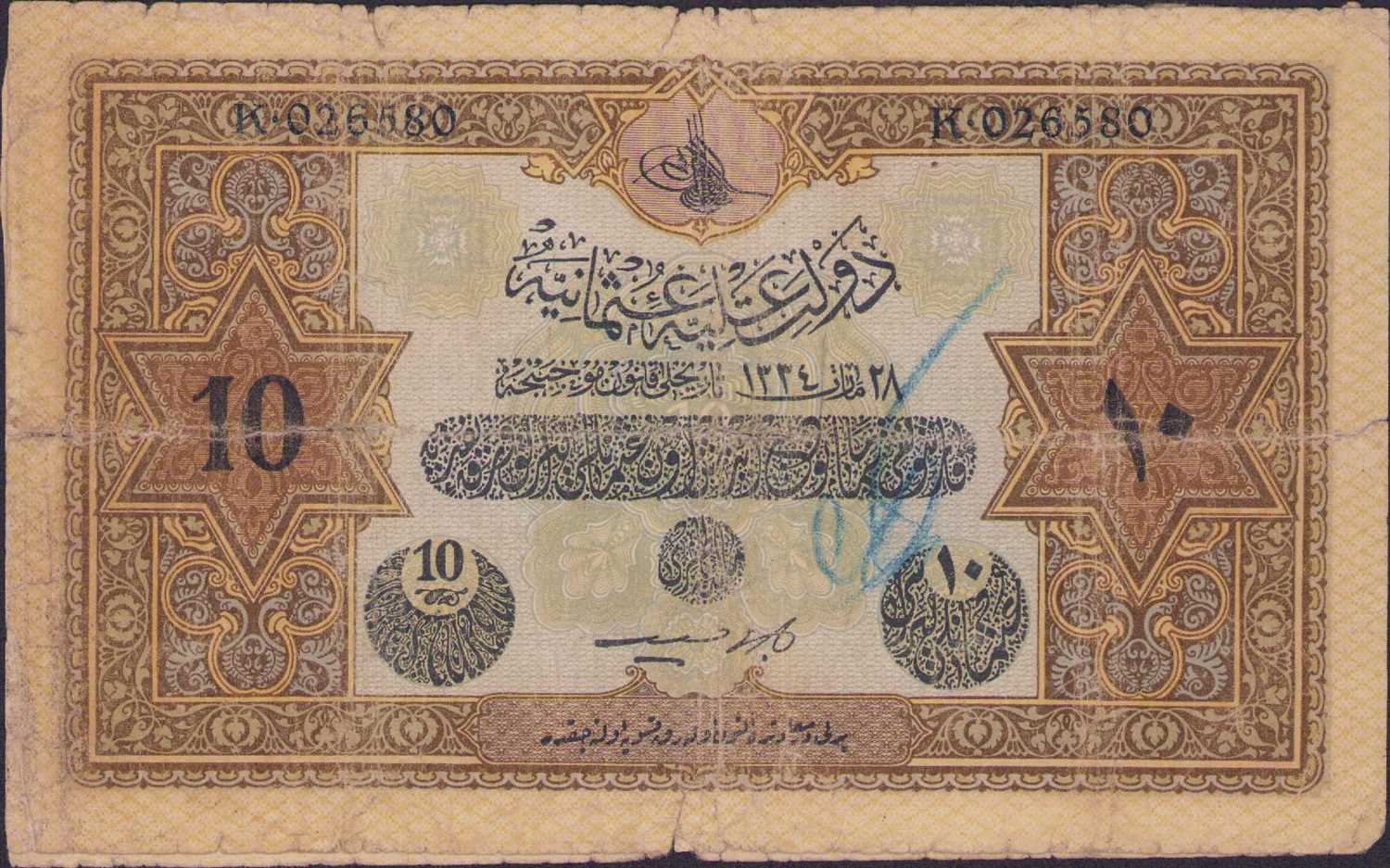 1334 SULTAN VAHİDEDDİN 10 LİRA SERİ K HALİYLE