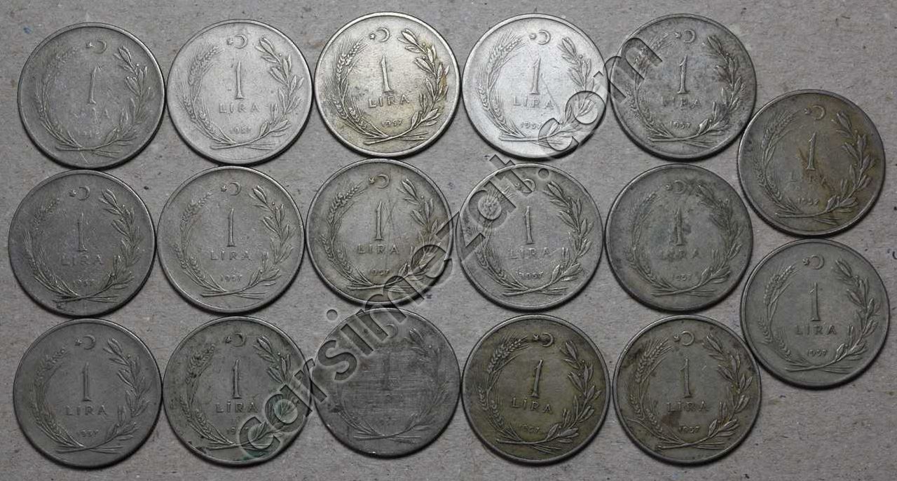 17 Lİ LOT 1 LİRA 1957 TEMİZ