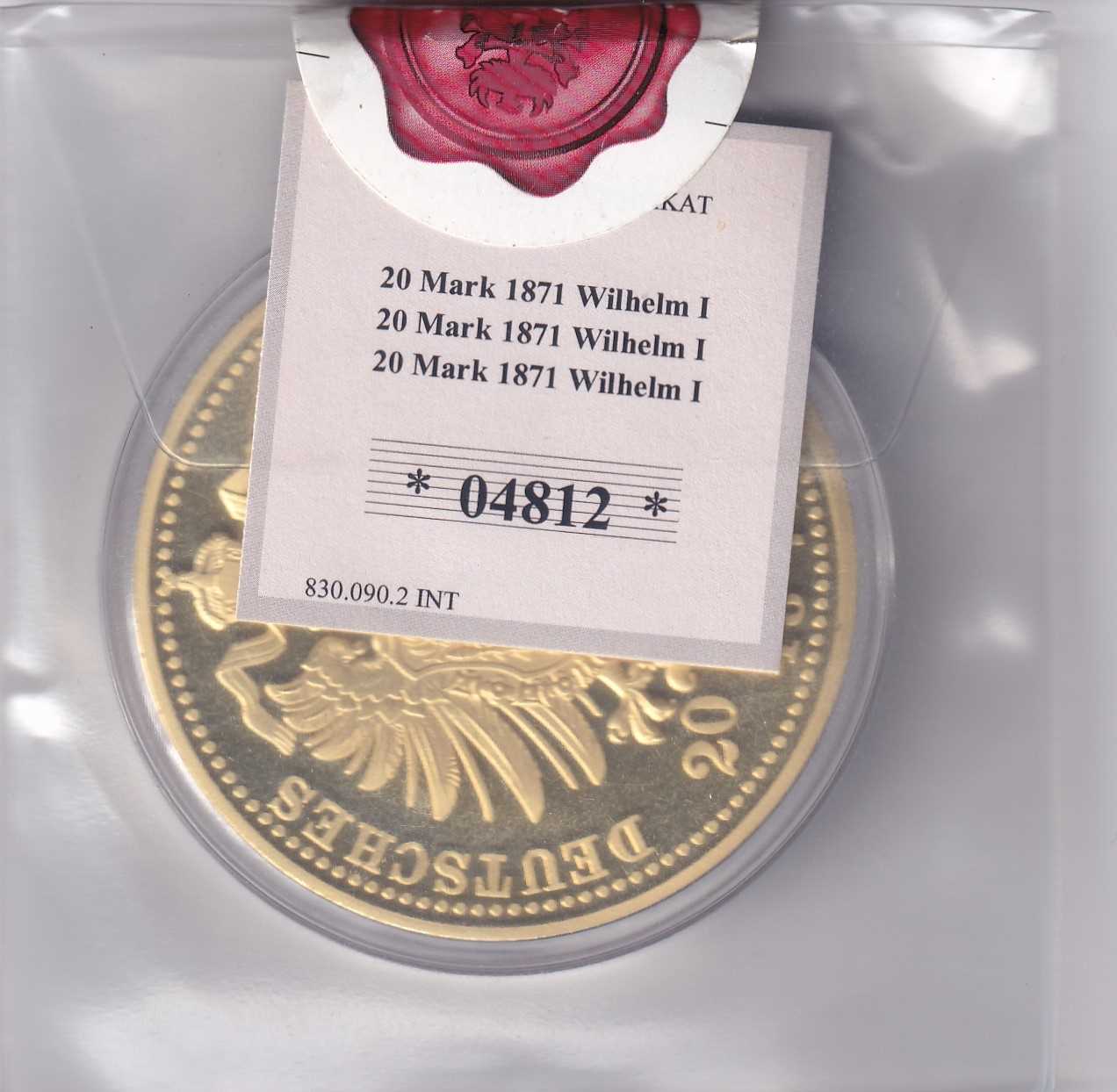 1871 ALMANYA 5 MARK TIPKI BASIM BÜYÜK BOY MADALYON HATIRA SERTİFİKALI ÇİL