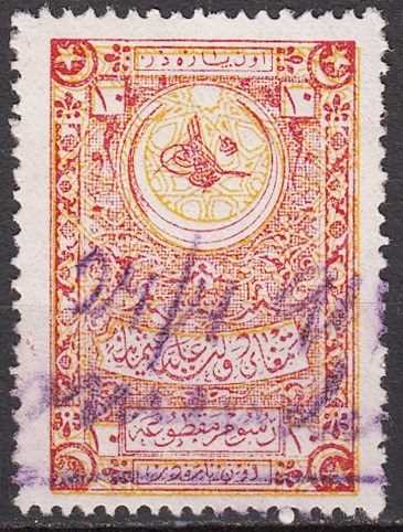 1912 SULTAN REŞAD TUĞRALI NISBİ DAMGA PULLARI 10P SARI ZEMİN