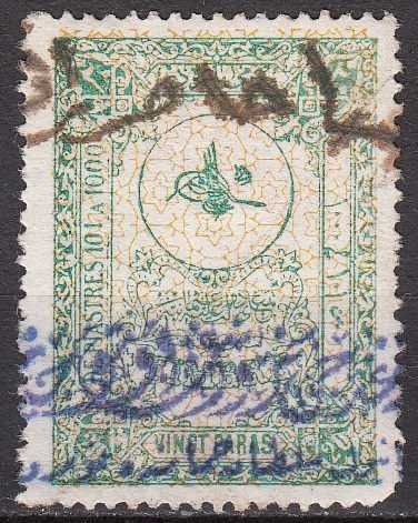 1912 SULTAN REŞAD TUĞRALI NISBİ DAMGA PULLARI 20P SARI ZEMİN