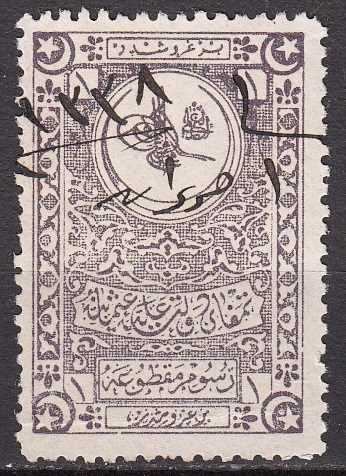 1915 SULTAN REŞAD EL-GAZİ TUĞRALI KARMA ÜCRET FİSKALLERİ 1K KOYU LEYLAK RENGİ
