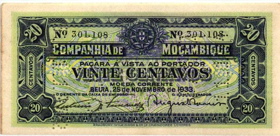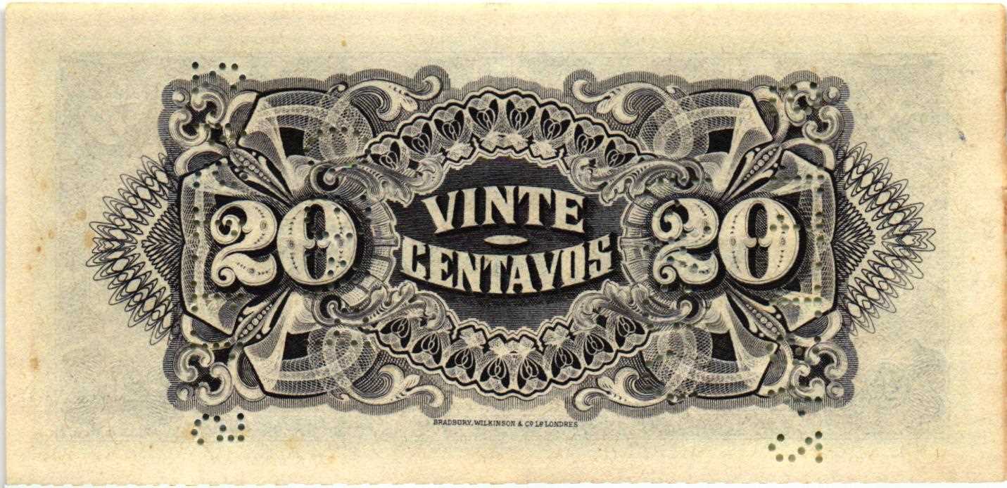 1933 MOZAMBİK 20 CENTAVO PERFORE DELİKLİ ÇİL ALTI+