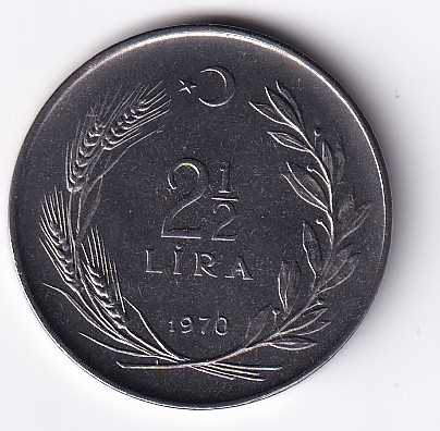 1970 2.5 LİRA SABAN KILIÇTAN ÜSTÜNDÜR ÇİL