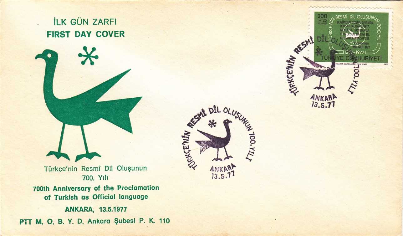 1977 TÜRKÇENİN RESMİ DİL OLUŞUNUN 700. YILI FDC-250 KATALOG: 15 TL