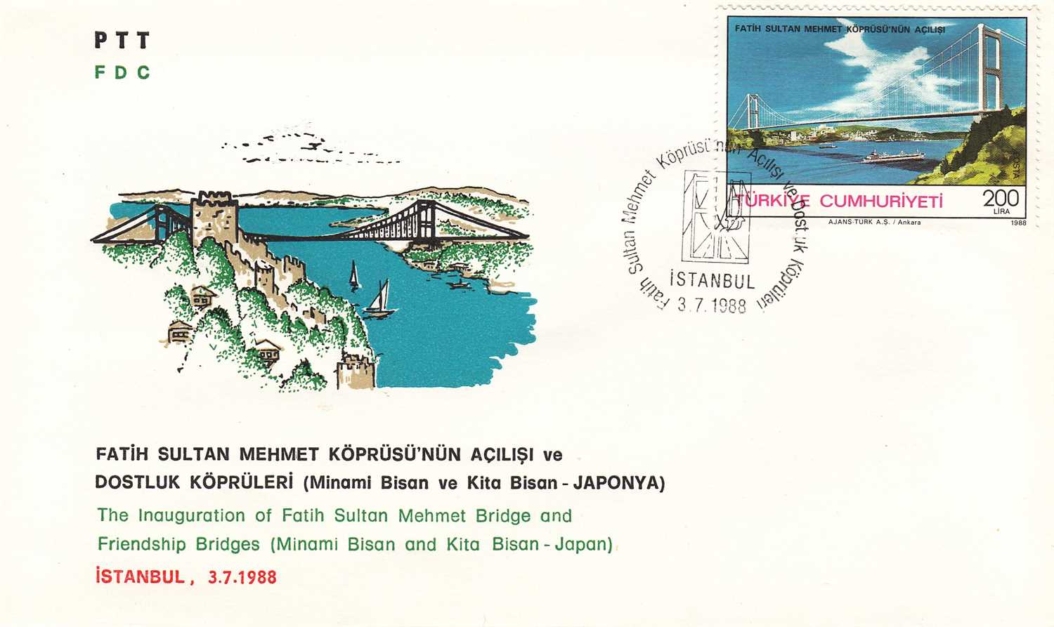 1988 FATİH SULTAN MEHMET KÖPRÜSÜNÜN AÇILIŞI FDC KATALOG: 100 TL
