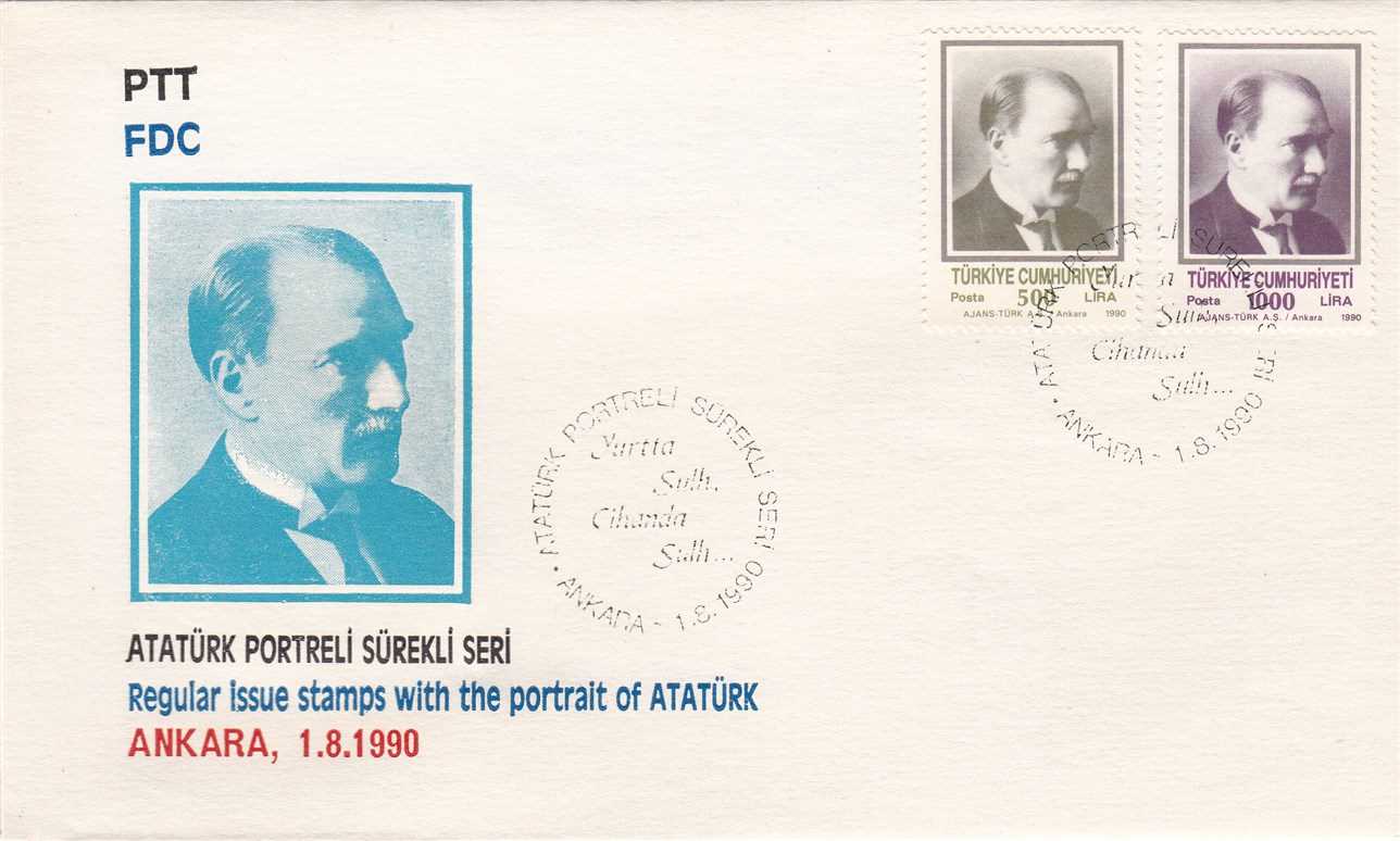 1990 ATATÜRK PORTRELİ SÜREKLİ SERİ FDC-431 KATALOG: 120 TL