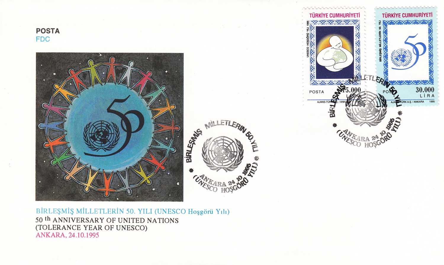1995 BİRLEŞMİŞ MİLLETLER TEŞKİLATININ 50. YILI FDC KATALOG: 85 TL