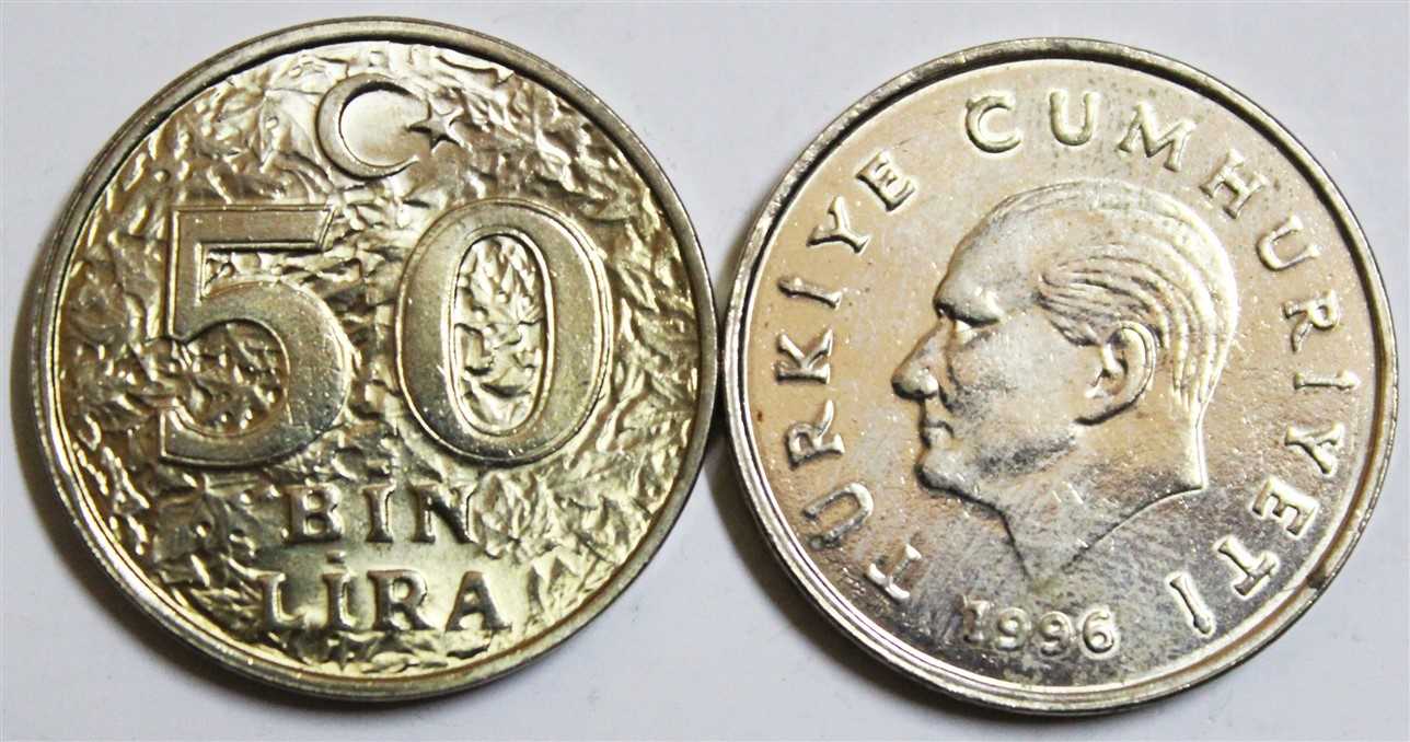 1996 50.000 LİRA TERS - DÜZ 2 Lİ LOT ÇİL-