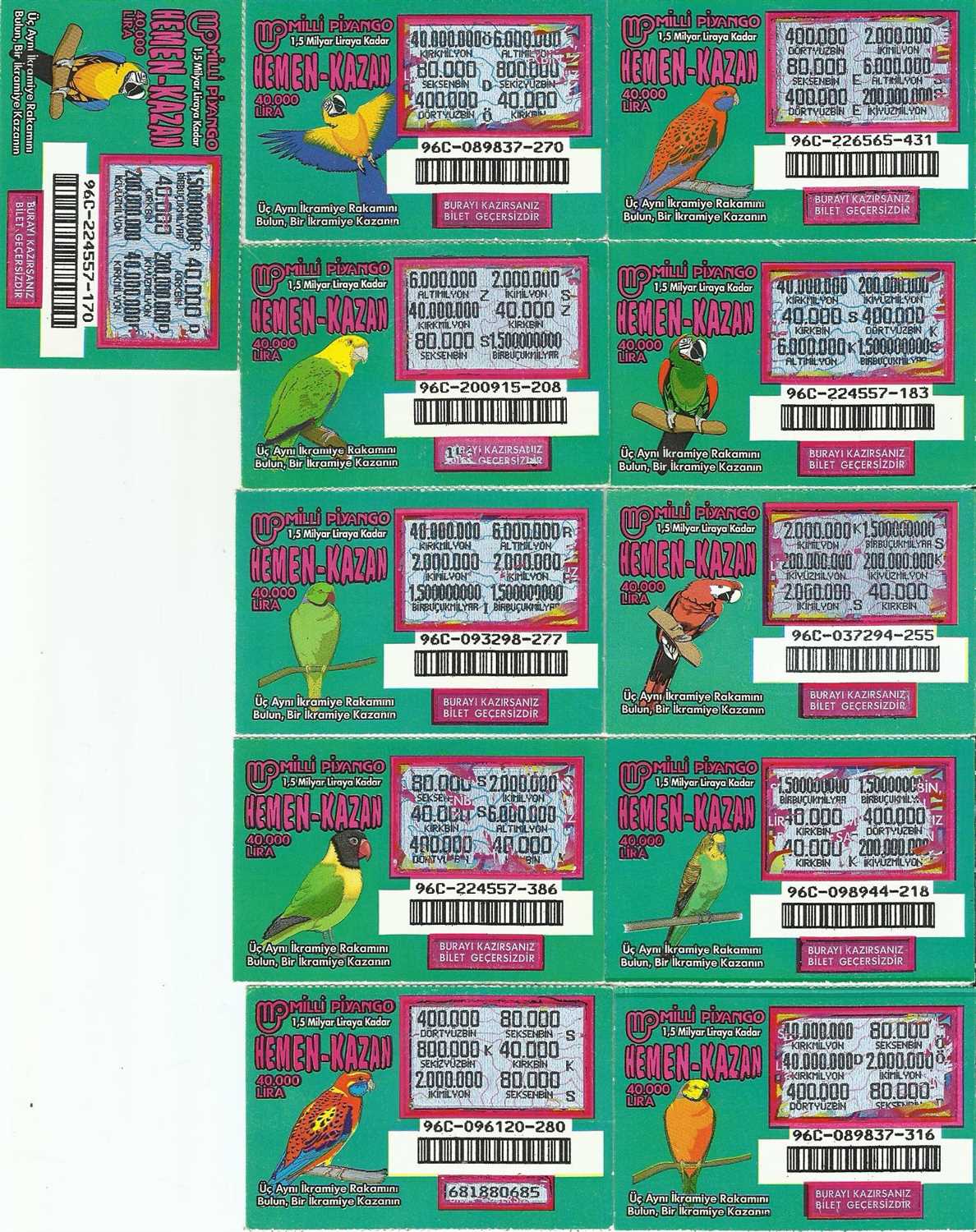 1996-C SERİSİ 11 ADET - PAPAĞANLAR