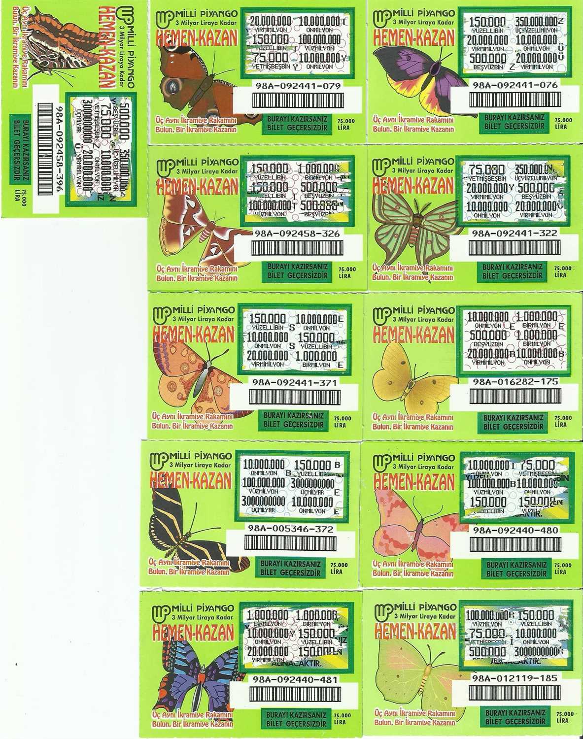1998-A SERİSİ 11 ADET - KELEBEKLER
