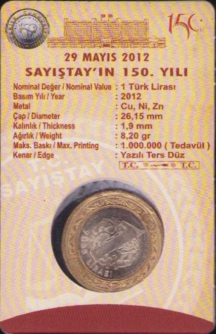 2012 1 LİRA SAYIŞTAYIN 150. YILI ÖZEL ZARFINDA ÇİL