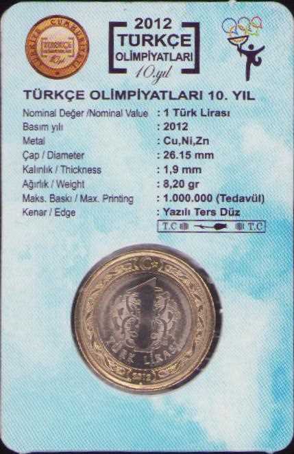 2012 1 LİRA TÜRKÇE OLİMPİYATLARI ÖZEL ZARFINDA ÇİL