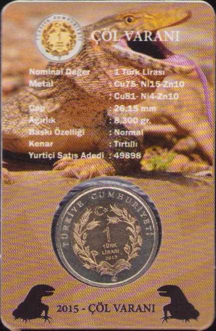 2015 1 LİRA ÇÖL VARANI ÖZEL ZARFINDA ÇİL