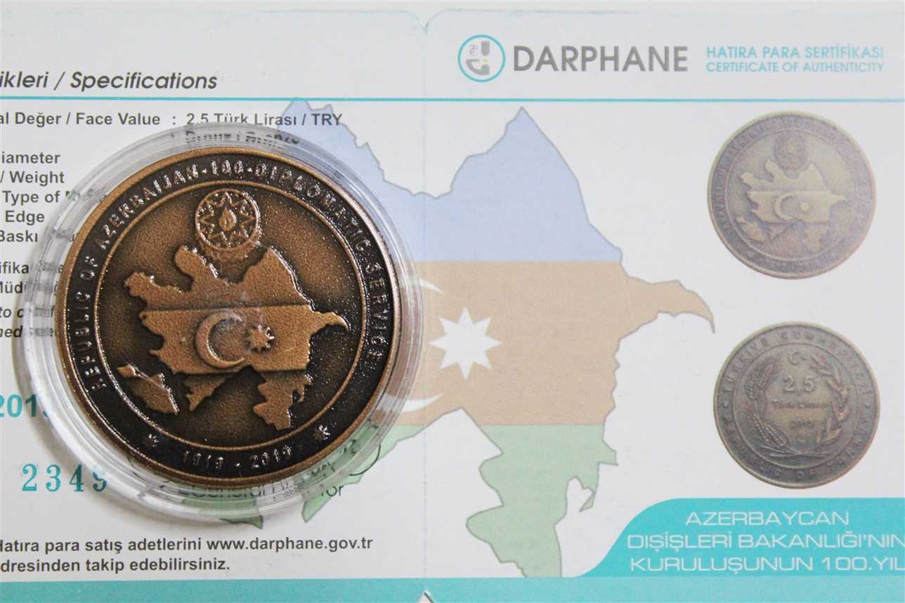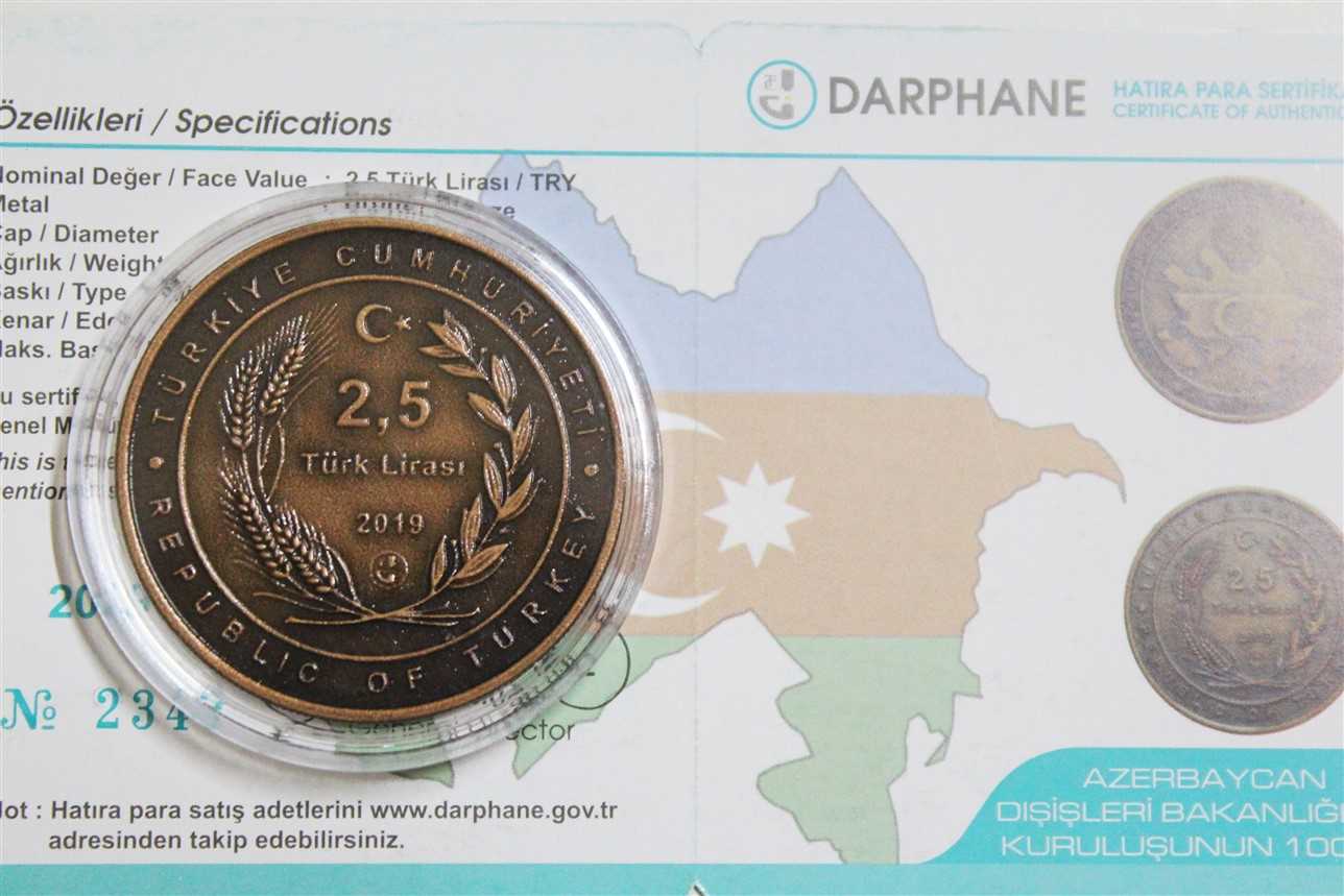 2019 2.5 LİRA AZERBAYCAN DIŞİŞLERİ BAKANLIĞININ KURULUŞUNUN 100. YILI HATIRA SERTİFİKALI ÇİL