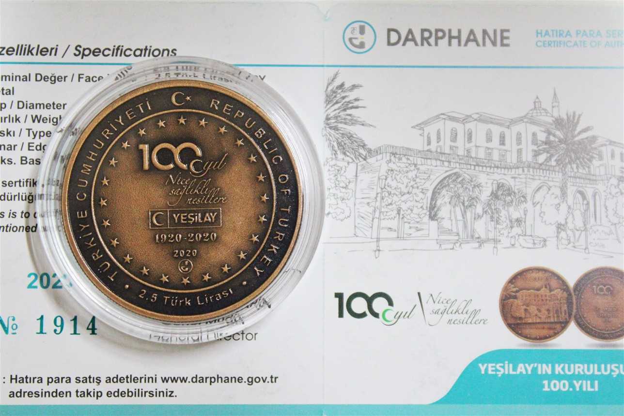 2020 2.5 LİRA YEŞİLAYIN KURULUŞUNUN 100. YILI HATIRA SERTİFİKALI ÇİL