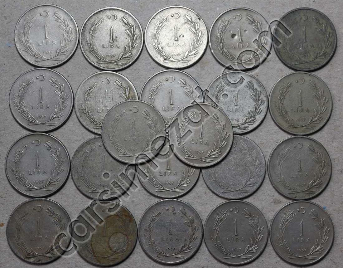 22 Lİ LOT 1 LİRA 1957 TEMİZ