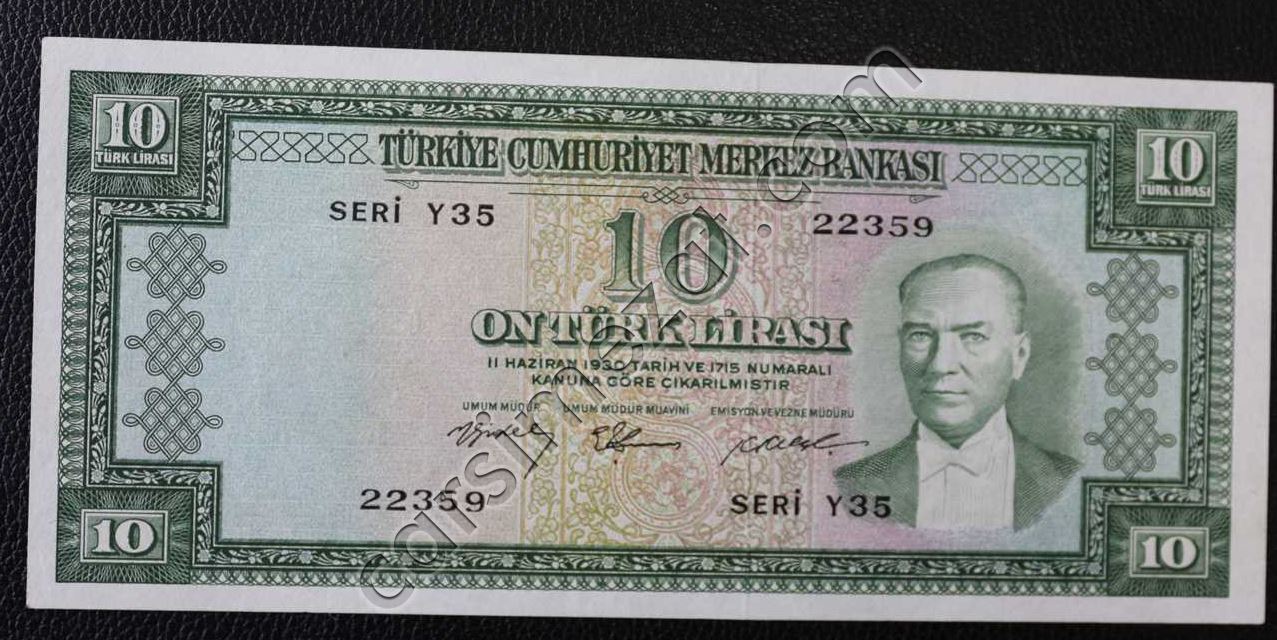 5. EMİSYON 10 LİRA 3. TERTİP Y35 NATUREL ÇA