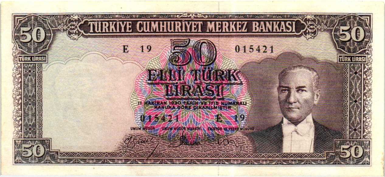 5. EMİSYON 50 LİRA 5. TERTİP E19 DÜZELTİLMİŞ ÇA