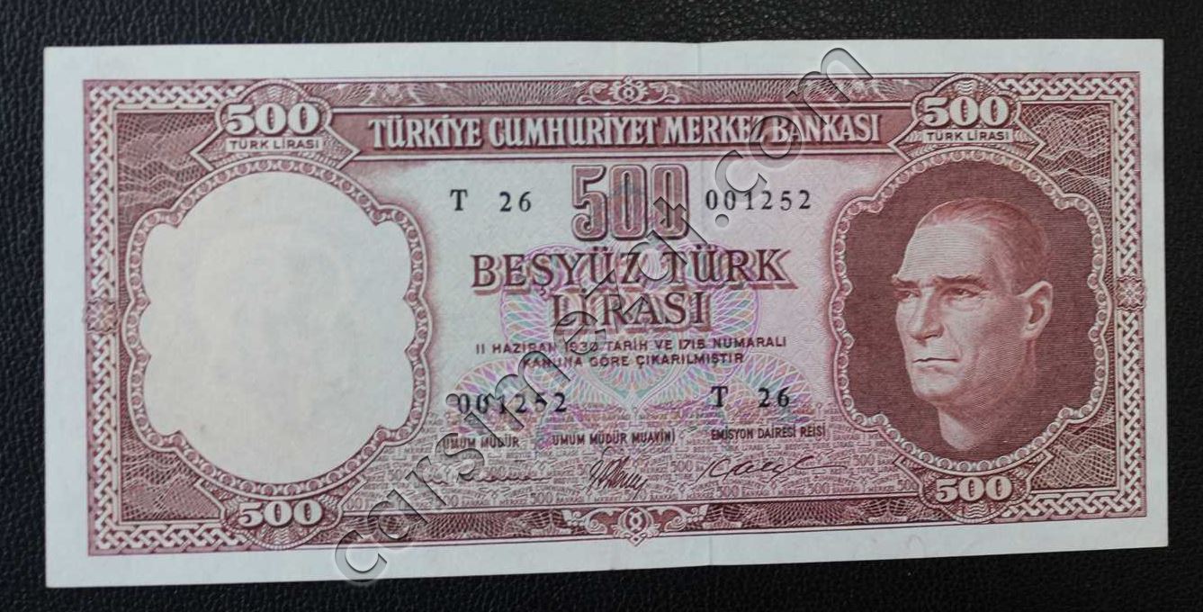 5. EMİSYON 500 LİRA 3. TERTİP T26 NATUREL ÇA