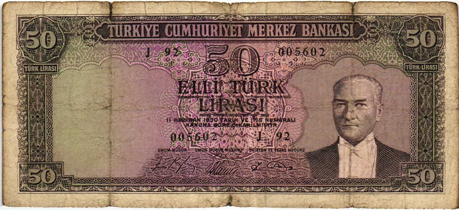 5. EMİSYON 6. TERTİP 50 LİRA J92 HALİYLE
