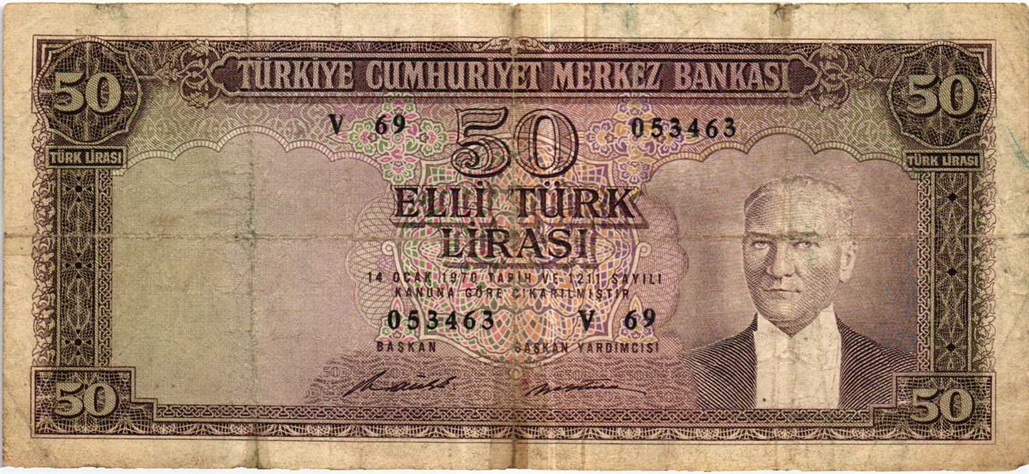 5. EMİSYON 7. TERTİP 50 LİRA V69 TEMİZ