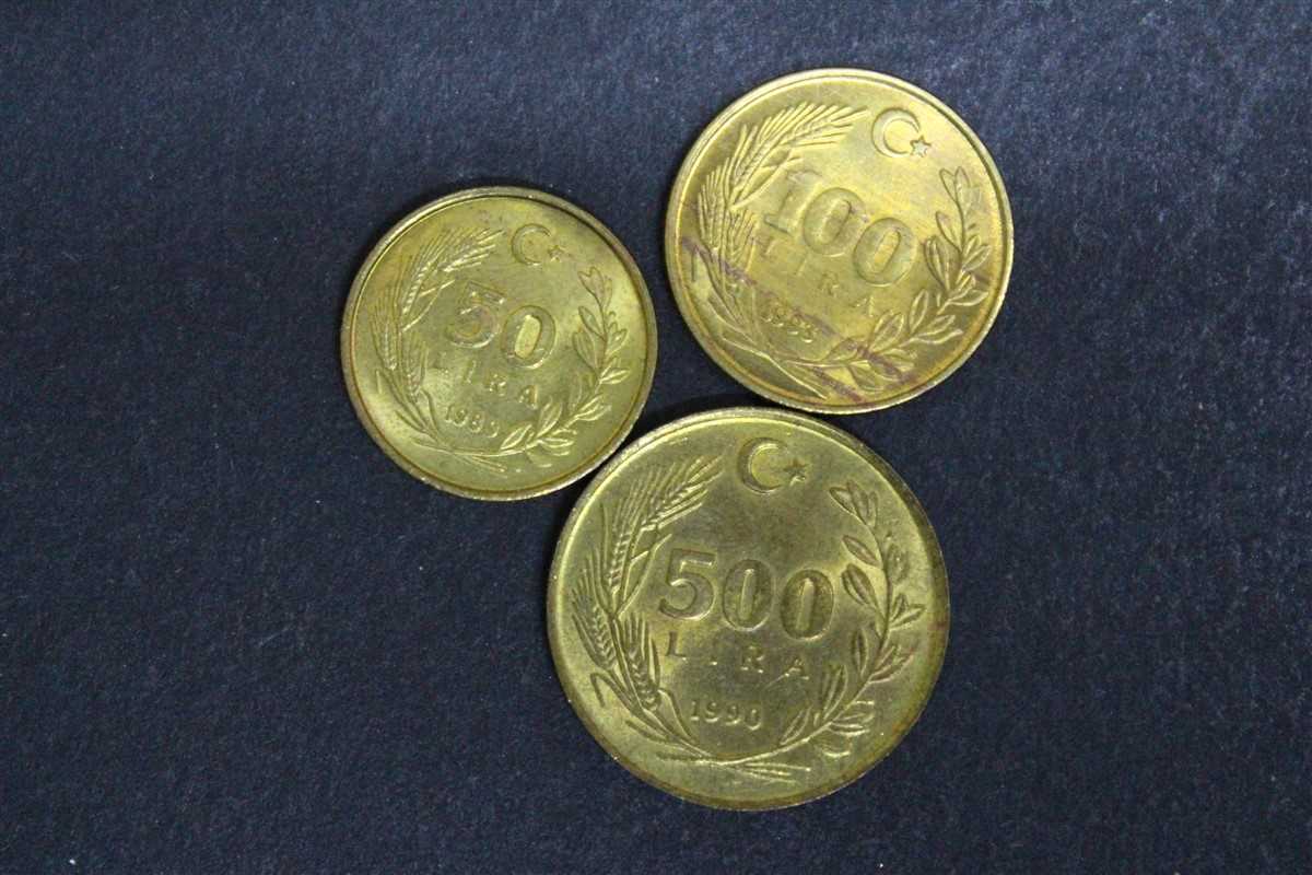 50 - 100 - 500 LİRA PİRİNÇ 3 LÜ LOT ÇİL