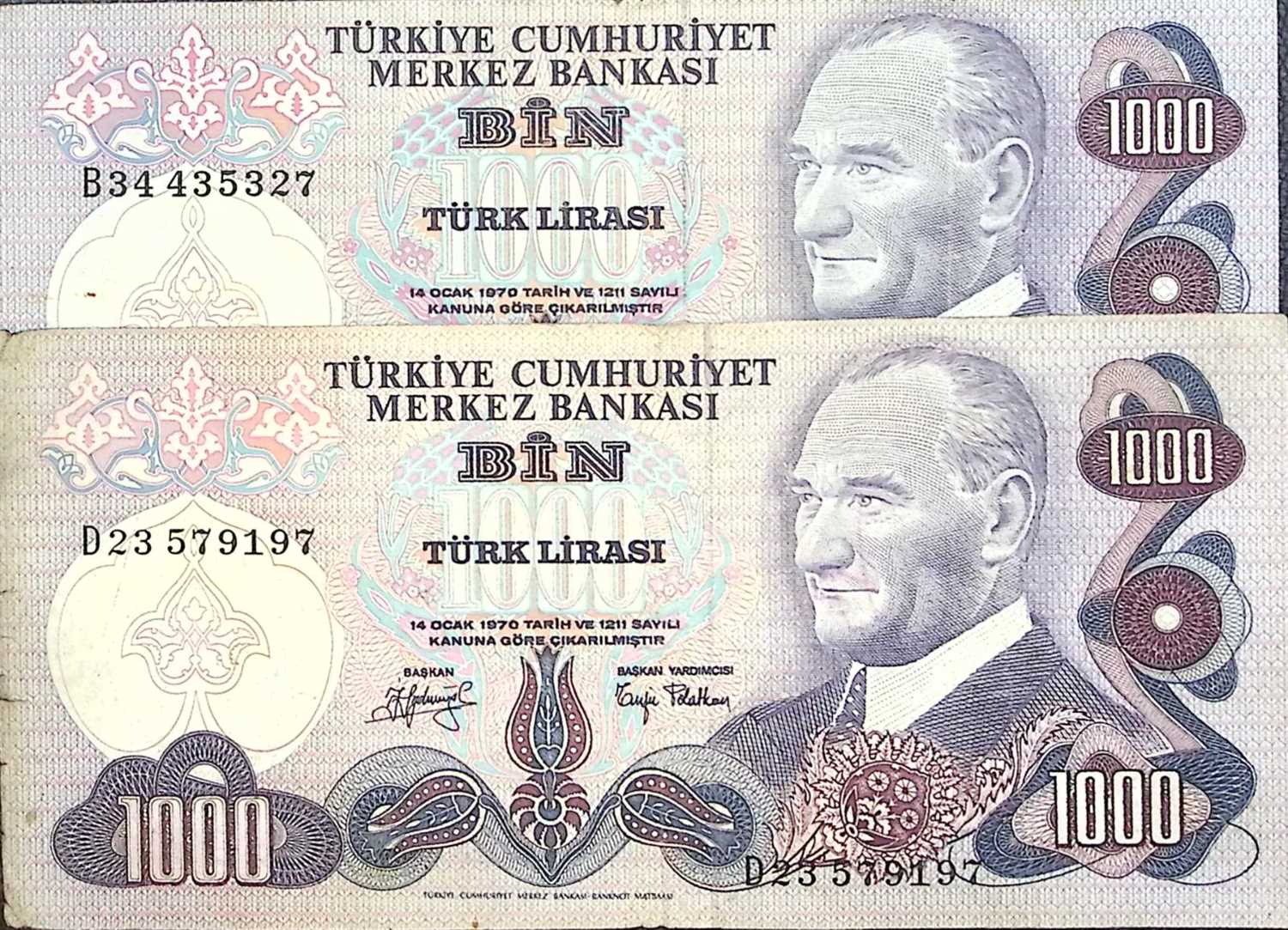6. EMİSYON 1.000 LİRA 2 Lİ LOT TEMİZ