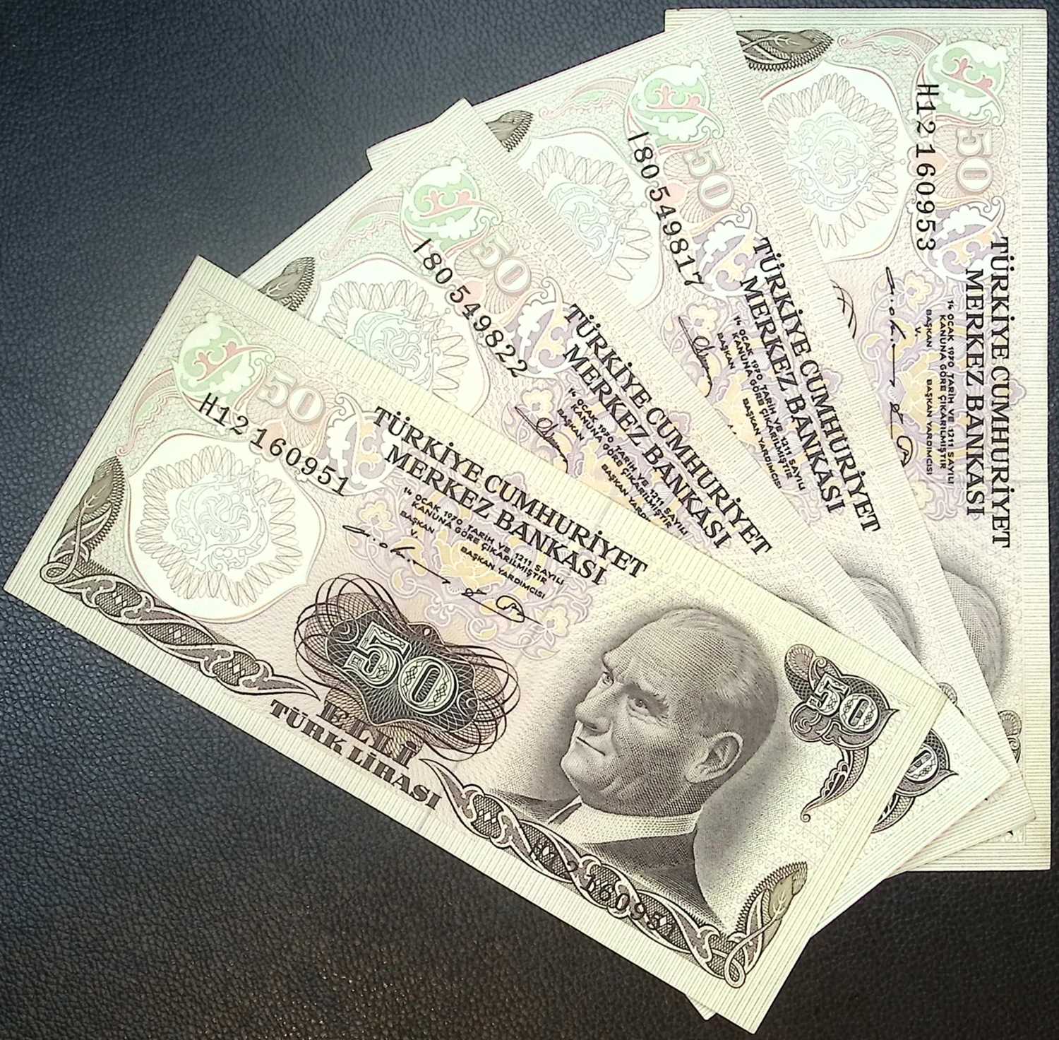 6. EMİSYON 50 LİRA KARIŞIK 4 LÜ LOT ÇT