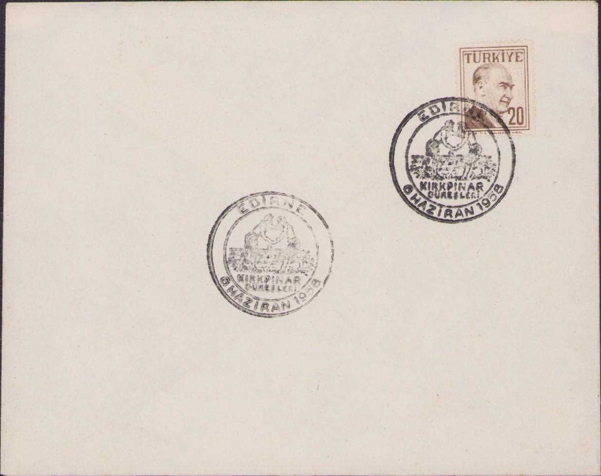 6 HAZİRAN 1958 EDİRNE KIRKPINAR GÜREŞLERİ DAMGALI PULLU ZARF