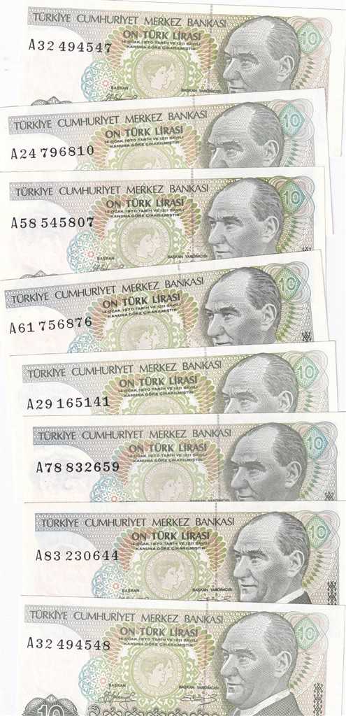 7. EMİSYON 10 LİRA 8 Lİ LOT ÇİL