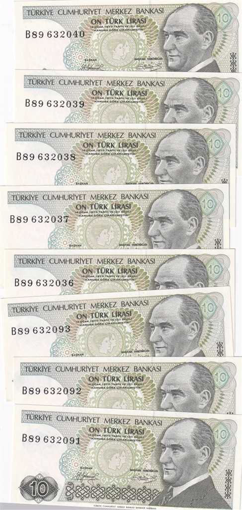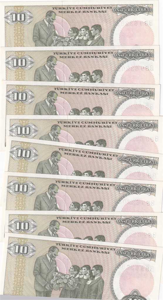 7. EMİSYON 10 LİRA B89 8 Lİ LOT ÇİL