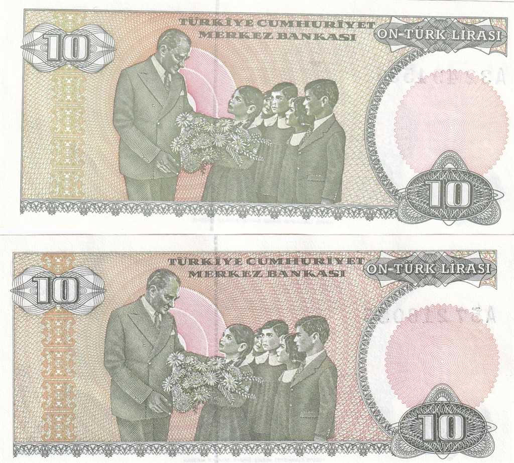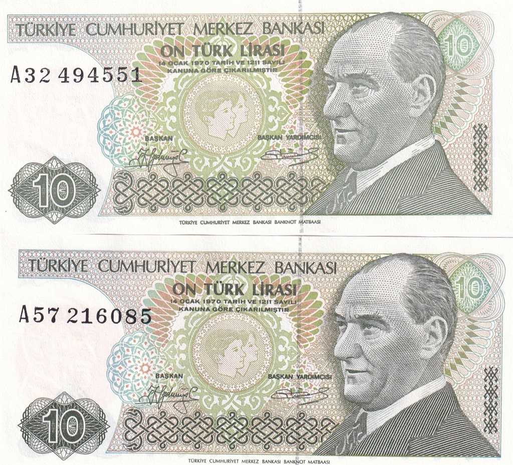 7. EMİSYON 10 LİRA KISA KAŞ - UZUN KAŞ 2 Lİ LOT ÇİL