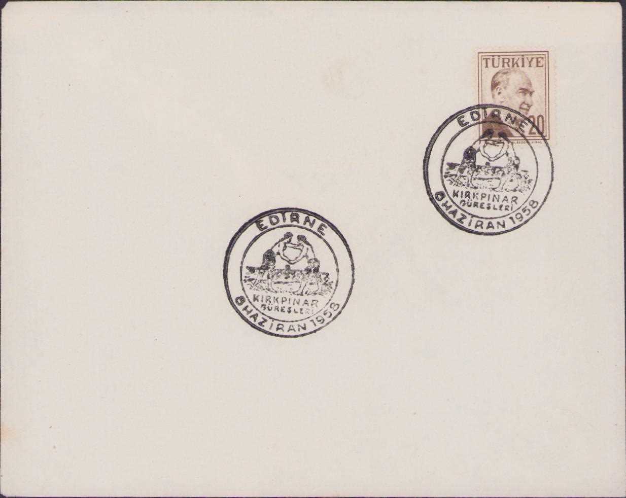 8 HAZİRAN 1958 EDİRNE KIRKPINAR GÜREŞLERİ DAMGALI PULLU ZARF