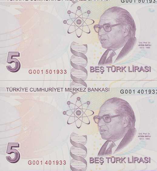 9. EMİSYON 5 TL SERİ G 001 İKİZ DOĞUM TARİHLİ 1933 ÇİL