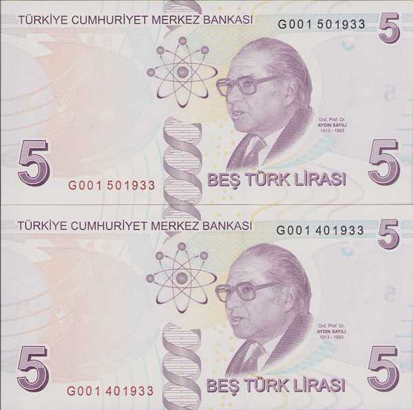 9. EMİSYON 5 TL SERİ G 001 İKİZ DOĞUM TARİHLİ 1933 ÇİL
