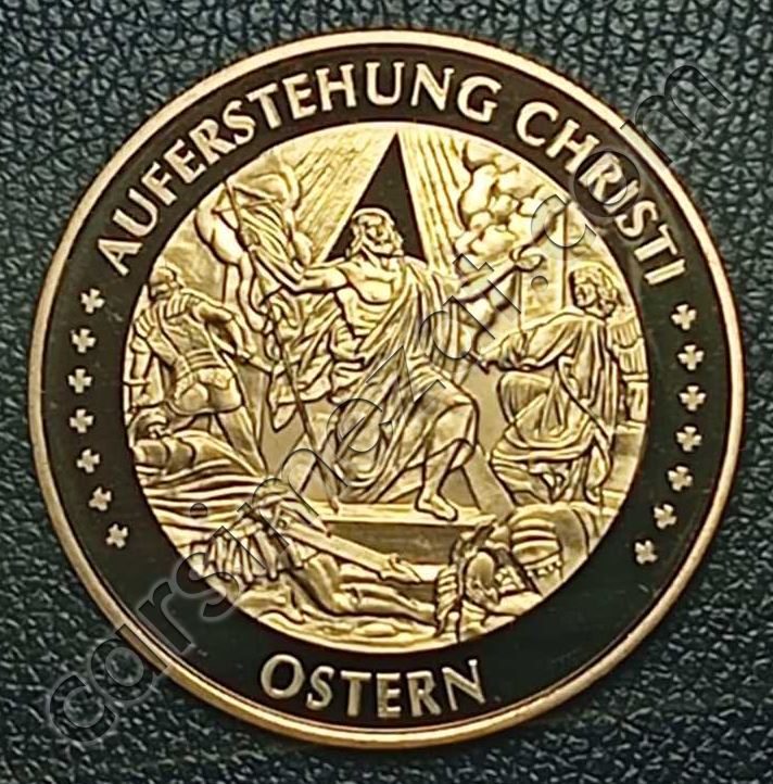ALTIN KAPLAMA PROF MADALYA HIRİSTİYAN İNANCI PASKALYA KAPSÜLÜNDE Gr.22.50 çap.40 bBASKI ADETİ 10.000