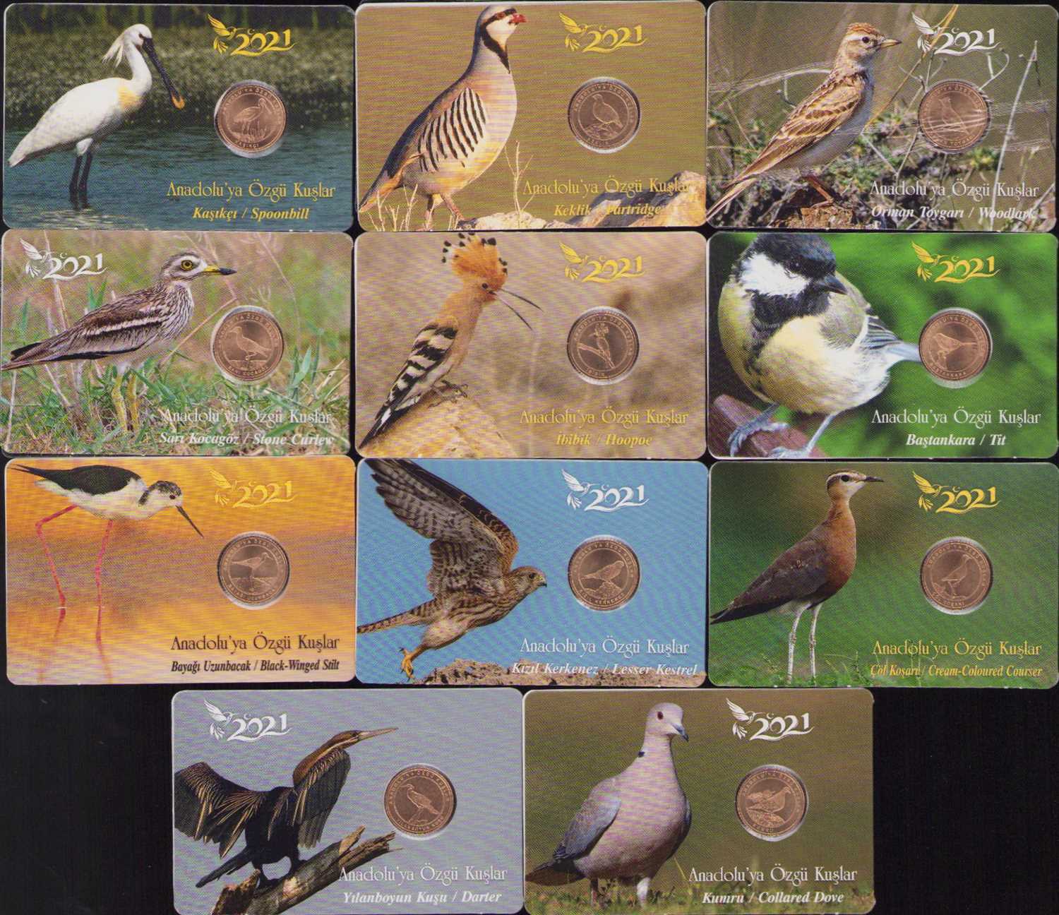 ANADOLUYA ÖZGÜ KUŞLAR SERİSİ BAKIR 11 ÇEŞİT ZARFLARIYLA BİRLİKTE LOT ÇİL