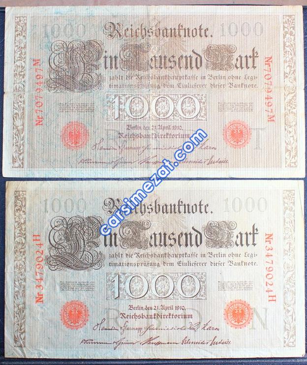 YABANCI KAĞIT ALMANYA 1000 MARK 1910 ÇÇT 1 Adet Resim