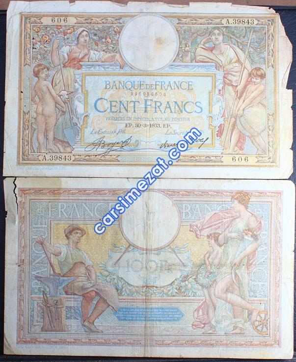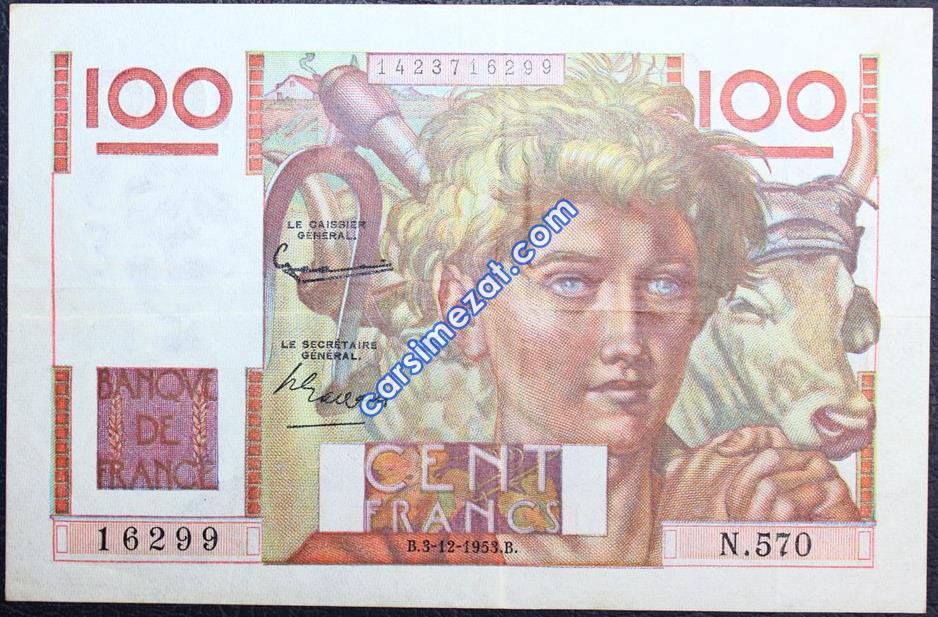 YABANCI KAĞIT FRANSA 100 FRANCS 1953 ÇT 2 Adet Resim