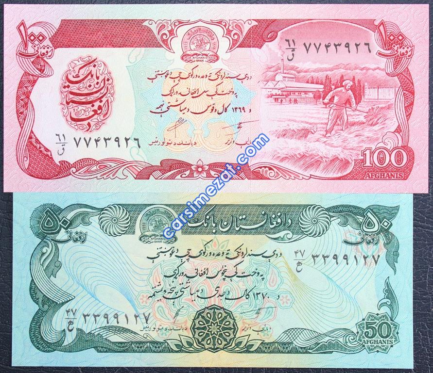 YABANCI KAĞIT AFGANİSTAN 50-100 AFGHANI 2 Lİ LOT ÇİL