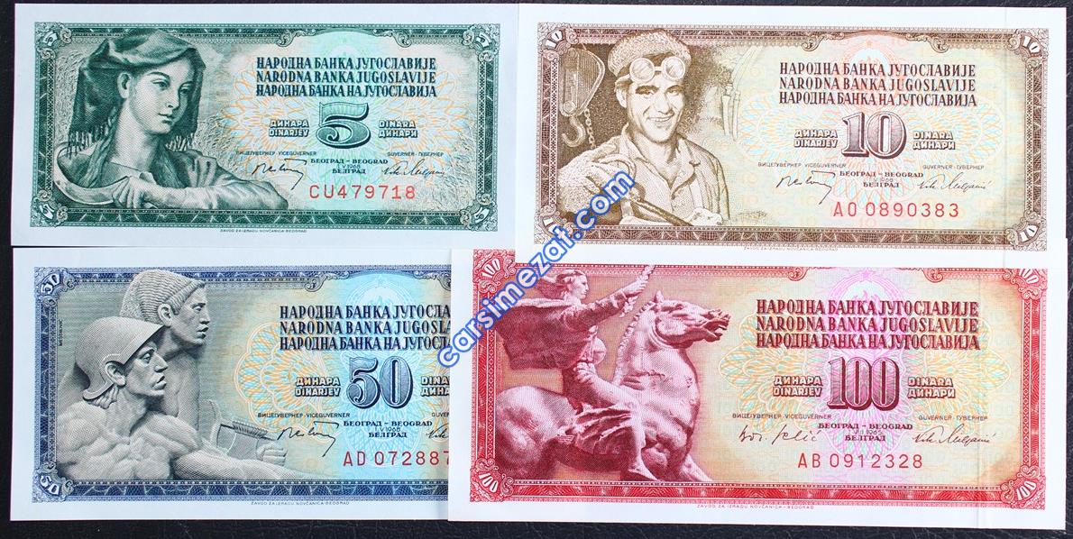YABANCI KAĞIT YUGOSLAVYA 5-10-50-100 DİNAR 4 LÜ LOT ÇİL