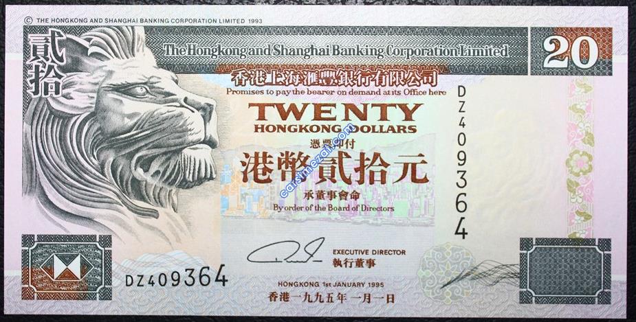 YABANCI KAĞIT HONG KONG 20 DOLAR 1995 ÇİL 2 Adet Resim