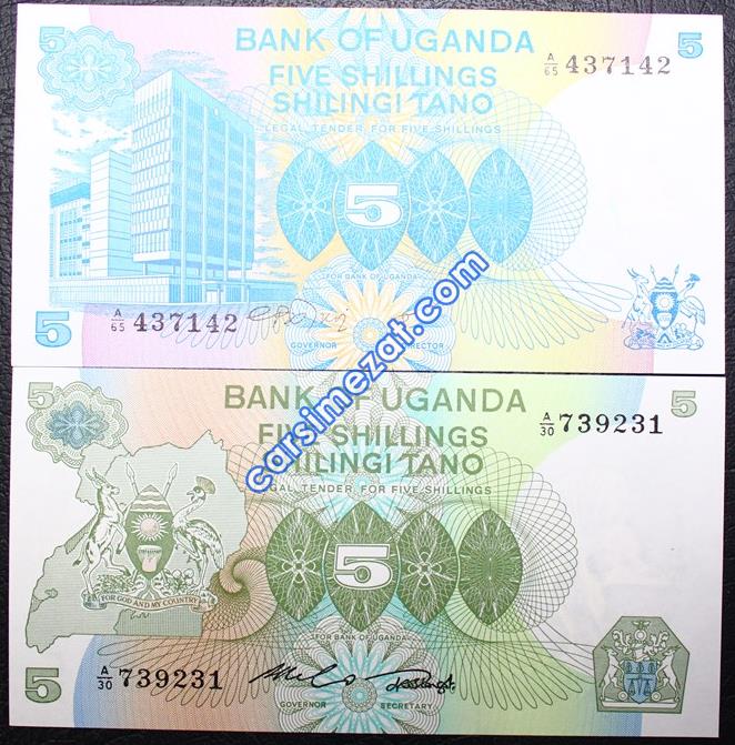 YABANCI KAĞIT UGANDA 5 ŞİLİN 2 Lİ LOT FARKLI RENK VE İMZA ÇİL
