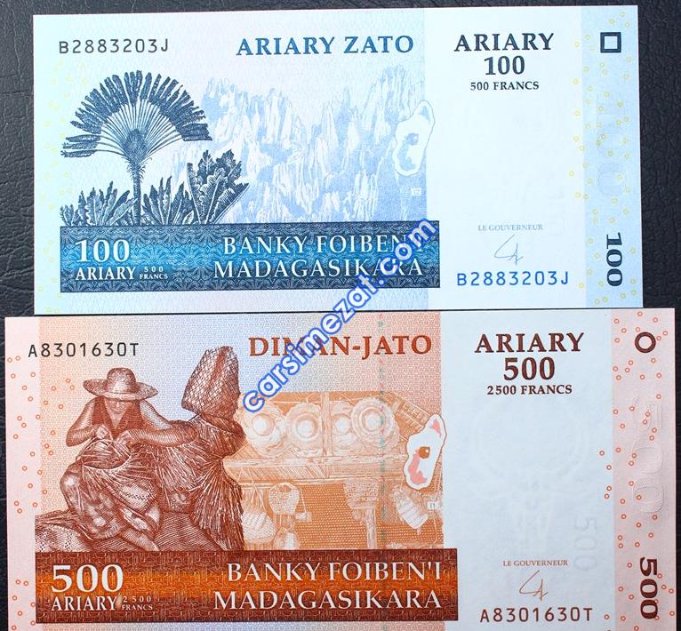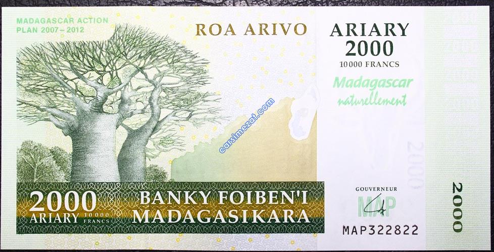 YABANCI KAĞIT MADAGASKAR HATIRA 2000 ARIARY 2007-2012 ÇİL 2 Adet Resim