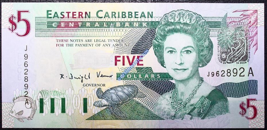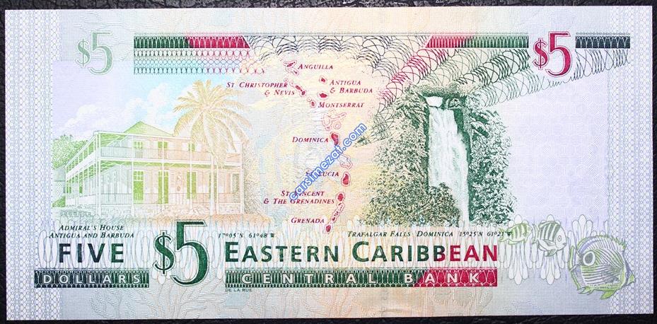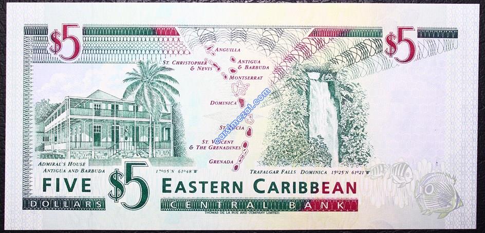 YABANCI KAĞIT KARAYİPLER ANTIQUA 5 DOLAR ÇİL 2 Adet Resim
