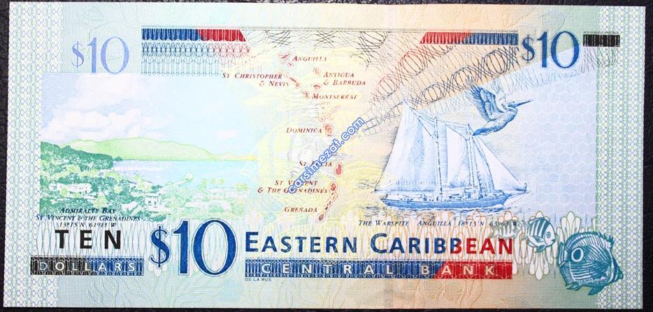 YABANCI KAĞIT KARAYİPLER ANTIQUA 10 DOLAR ÇİL 2 Adet Resim